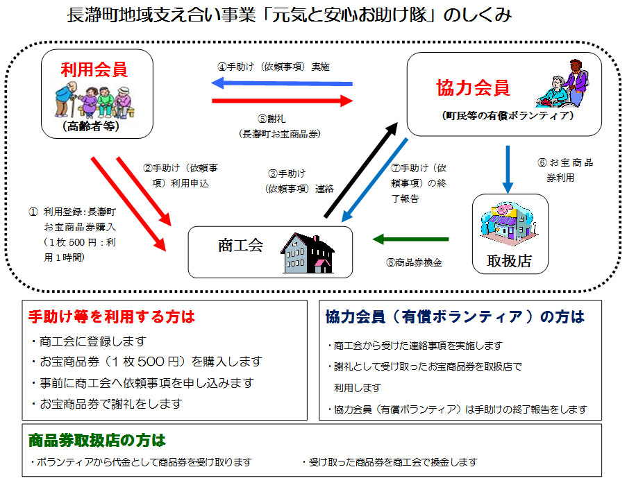 長瀞町商工会では、町健康福祉課、町社会福祉協議会、(社)シルバー人材センターの協賛・連携のもとに、埼玉県の「地域支え合いの仕組み推進事業」として開始することになりました。